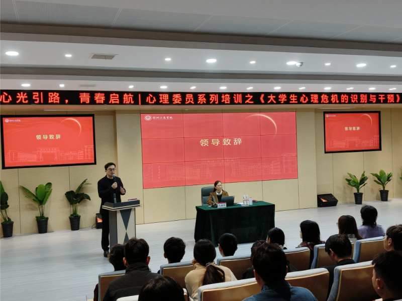 根据河南省委教育工委、河南省教育厅《关于开展2025年全省高校心理健康教育宣传周活动的通知》精神,为进一步加强和规范学校心理健康教育工作,提升心理委员队伍专业化水平。10月21日,心理健康教育中心邀请郑州市第八人民医院副院长孔德荣教授开展“大学生常见心理障碍的识别与干预策略”专题讲座。学生工作处副处长吴鹏、辅导员代表、郑州校区全体班级心理委员参加培训,培训由心理健康教育中心教师刘洁主持。