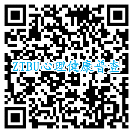 通过网址或扫描二维码进入心理服务云平台参加普查(https://xlzx.ztbu.edu.cn/mobile/#/Login?shortName=ZTBU)。用户名为“学号”,密码为“Ztbu@身份证后六位”(身份证号最后一位为“X”的需要大写)。